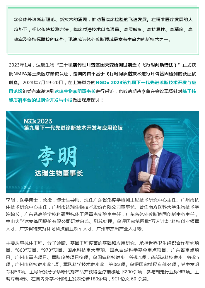 NGDx專訪|達(dá)瑞生物李明教授:聚焦優(yōu)生優(yōu)育領(lǐng)域,依托質(zhì)譜技術(shù)助力人類健康事業(yè)